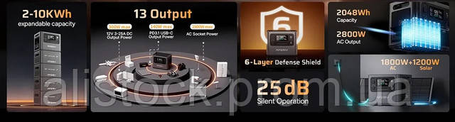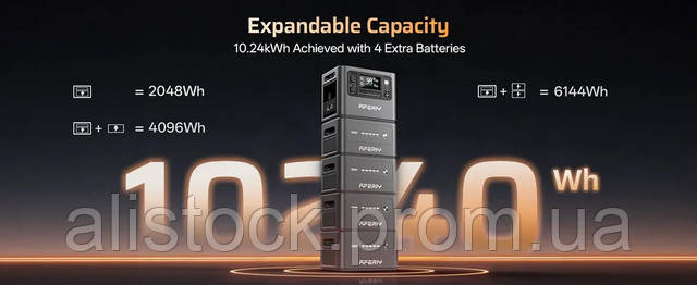 - Можливість розширення до 10240 Втгод (з 4 акумуляторами по 2048 Втгод).