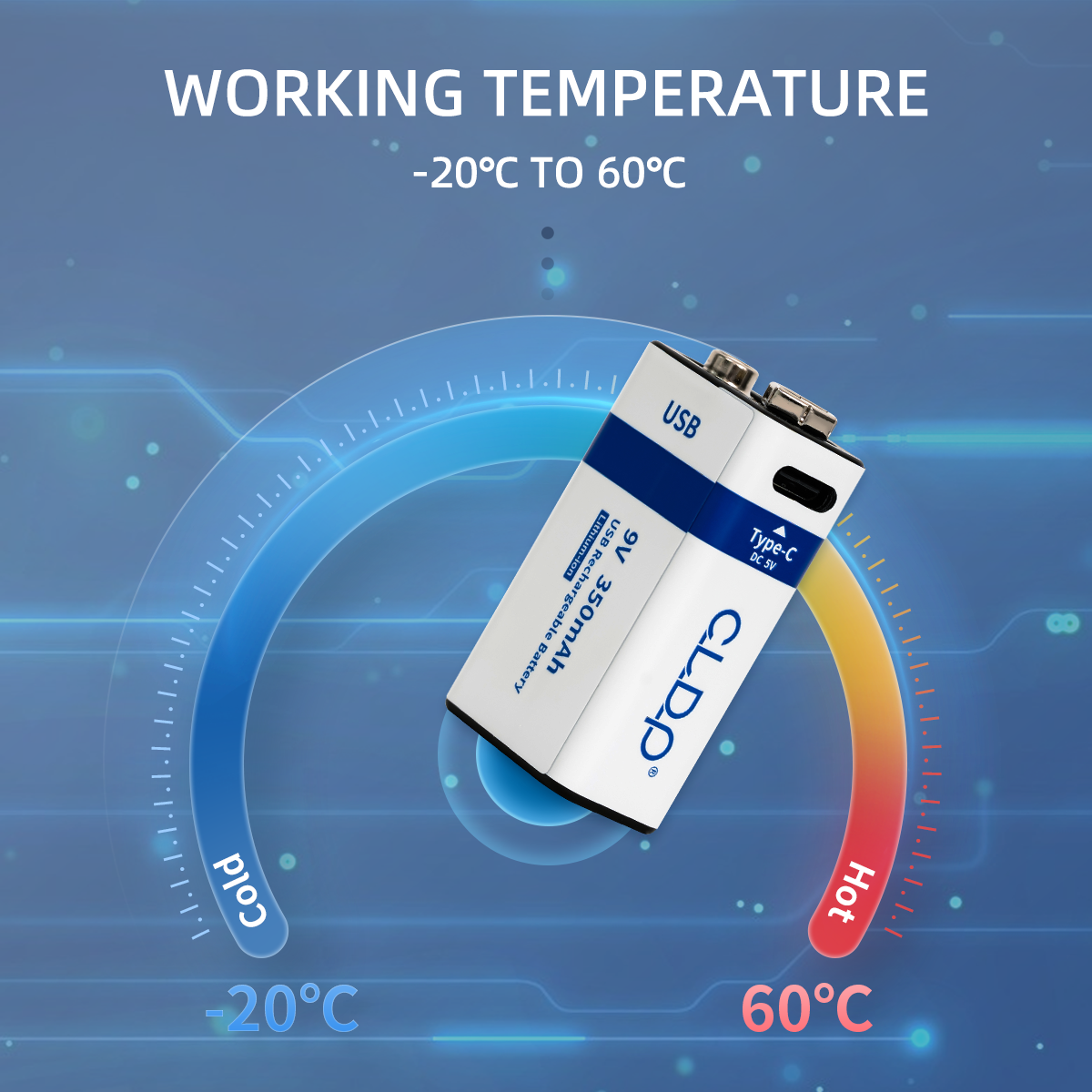 Акумуляторні батарейки CLDP Крона 6F22 Li-Po 9V 3150mWh — сучасне рішення для стабільного живлення пристроїв, що потребують напруги 9V.