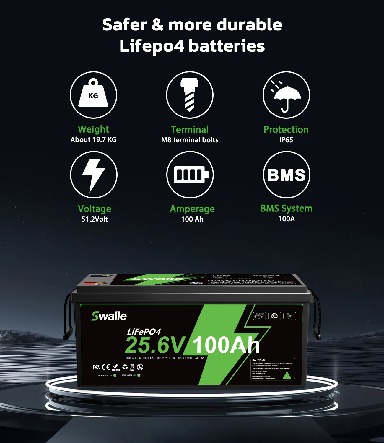 Акумулятор SWALLE LiFePO4 24V 100Ah (2560Wh) — це сучасне рішення для стабільного та довготривалого енергозабезпечення.