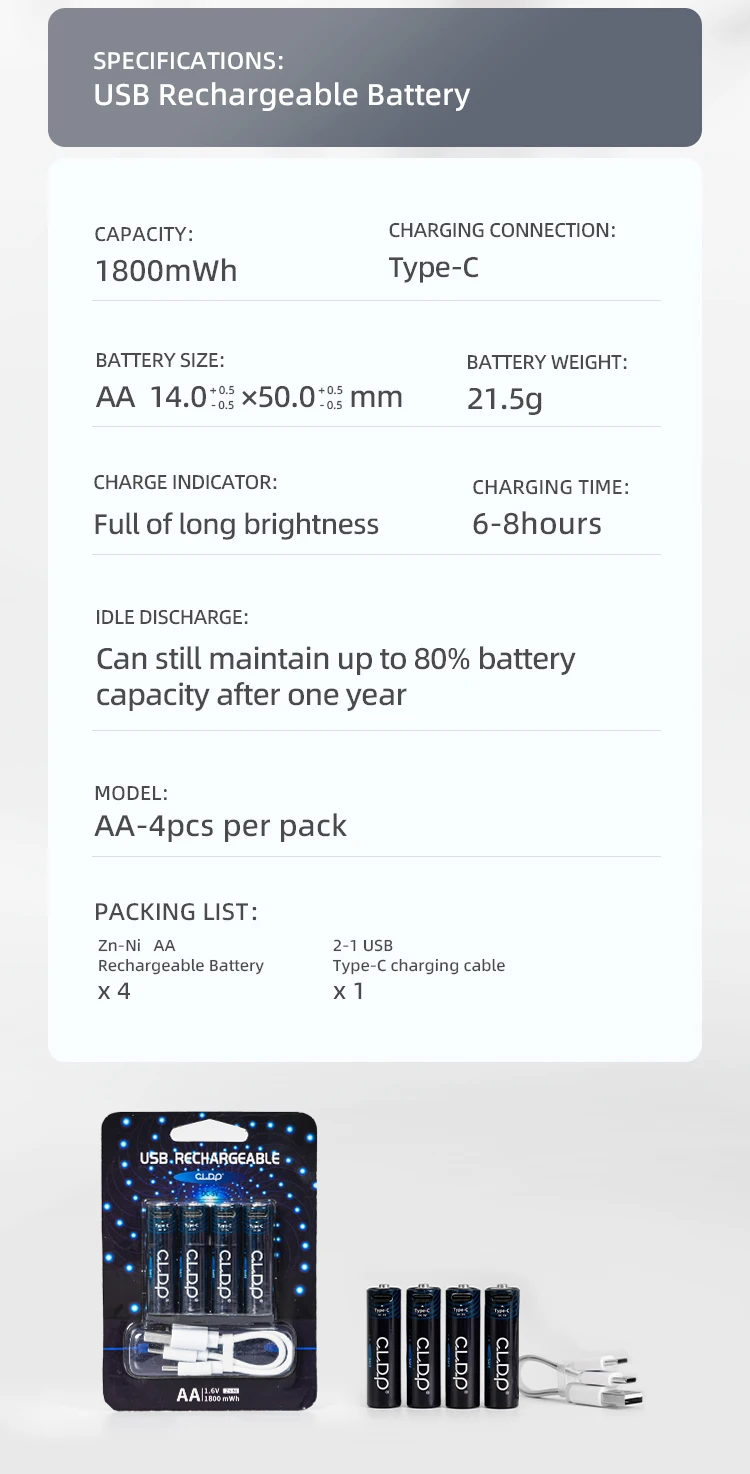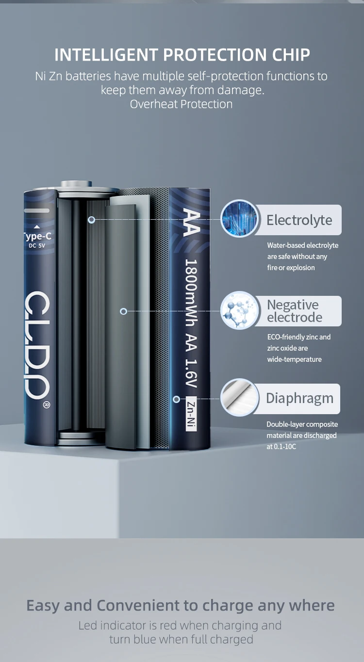 Акумуляторні батарейки CLDP Ni-Zn AA 1.6V 1800mWh — це сучасне рішення для живлення ваших пристроїв з максимальною зручністю та ефективністю.