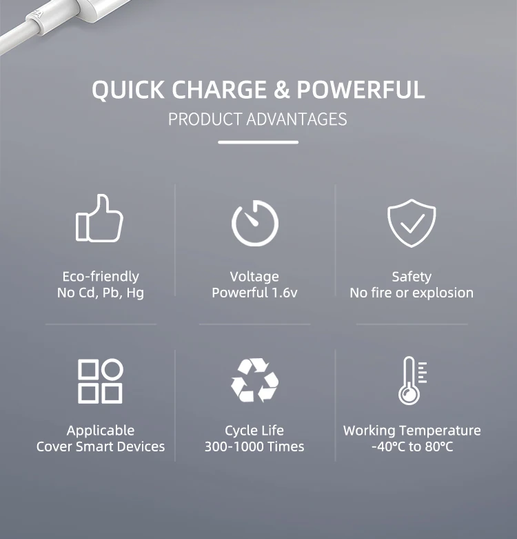 Технологія Ni-Zn забезпечує підвищену напругу 1.6В, що максимально наближена до звичайних лужних батарейок, забезпечуючи стабільну роботу навіть вимогливих пристроїв.