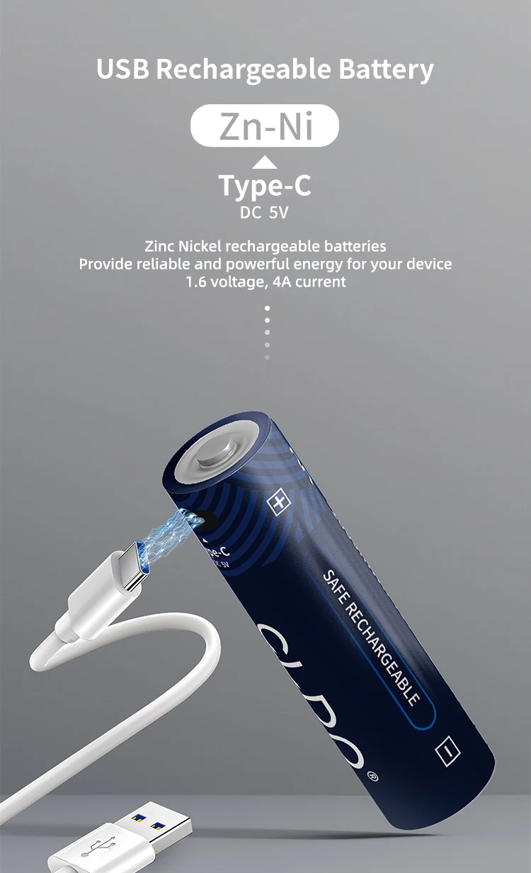 Завдяки вбудованому Type-C USB заряджанню, ви можете легко заряджати батарейки від будь-якого USB-порту без додаткових зарядних пристроїв.